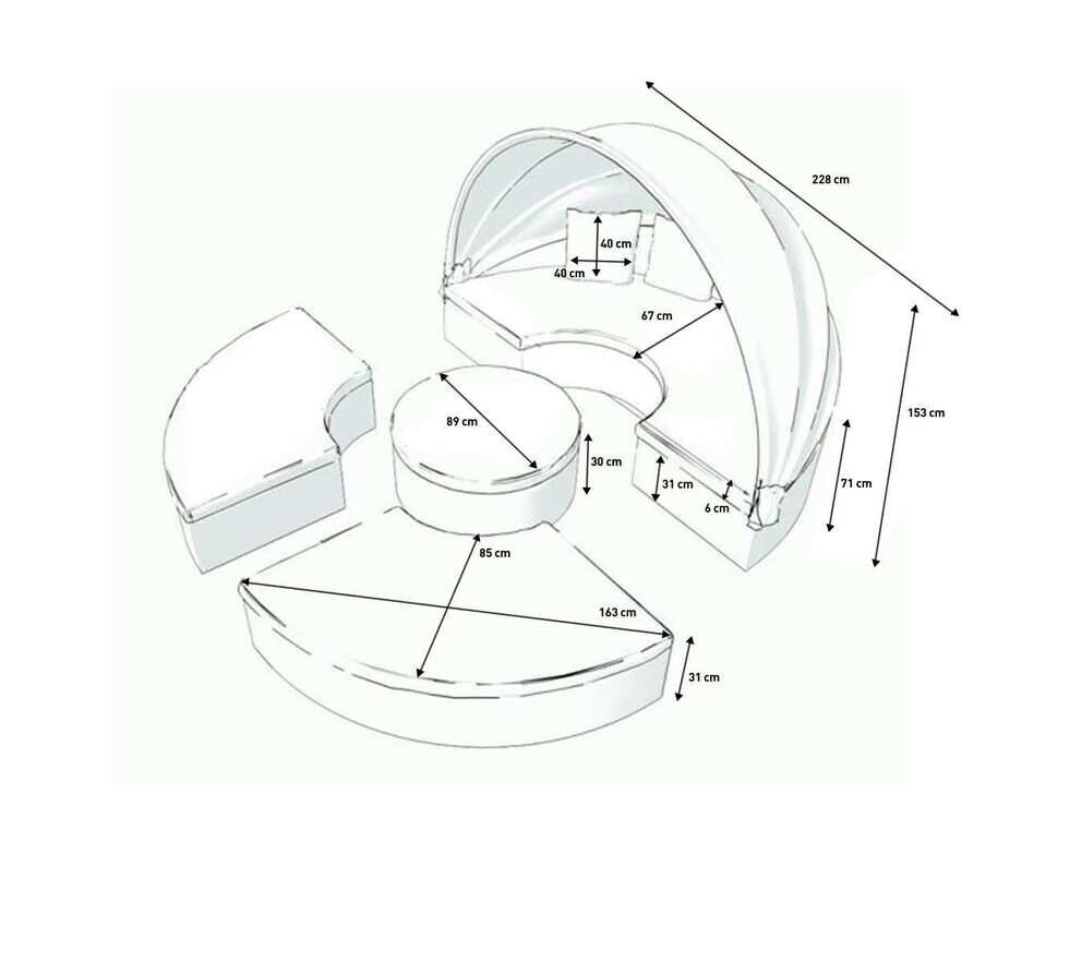 Ein besonderes Highlight der Hummel Gartenlounge ist ihre Vielseitigkeit. Mit nur wenigen Handgriffen lässt sich die Relaxmuschel in eine komplette Sitzgruppe verwandeln. So haben Sie immer die passende Lösung für jede Situation – sei es, um sich alleine zurückzuziehen oder um Gäste zu empfangen. Die Lounge besteht aus einem Mittelteilen mit integrierter Glasplatte, zwei Hockern und einem Kopfteil mit Dachkonstruktion. Alle Auflagen und Kissen sind inklusive und bieten höchsten Komfort.