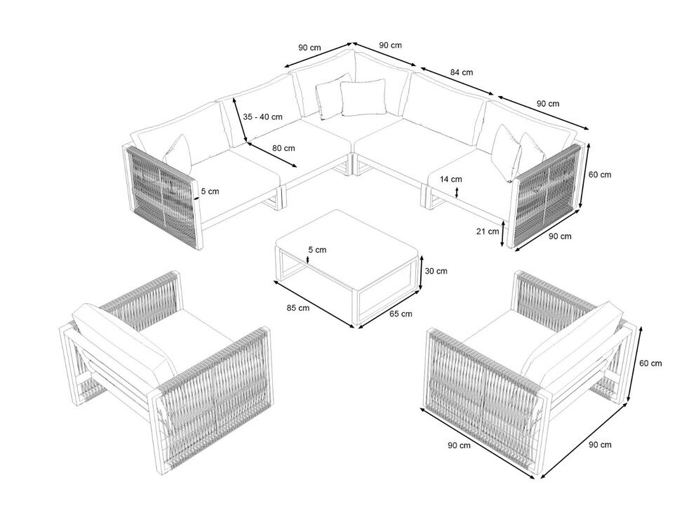 | ✔ | Hochwertige Materialien Das Set besteht aus robustem Aluminium und langlebigem Polyacryl, was nicht nur eine ansprechende Optik, sondern auch eine hohe Witterungsbeständigkeit und Langlebigkeit garantiert. Die Seilbespannung aus Rope sorgt für zusätzlichen Charme und Stabilität. |