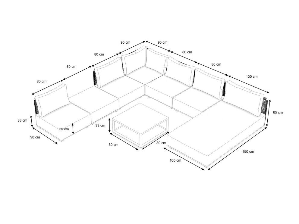 Die Maße der einzelnen Module sind so konzipiert, dass sie sich perfekt in jeden Außenbereich einfügen. Mit ca. 190 x 90 cm für die Liege, ca. 80 x 80 cm für die Mittelteile und den Hocker sowie ca. 80 x 80 cm für den Couchtisch haben Sie genügend Platz für gemütliche Stunden im Freien. Lassen Sie sich von der ARTELIA Misty L inspirieren und gestalten Sie Ihren Außenbereich ganz nach Ihren Vorstellungen.