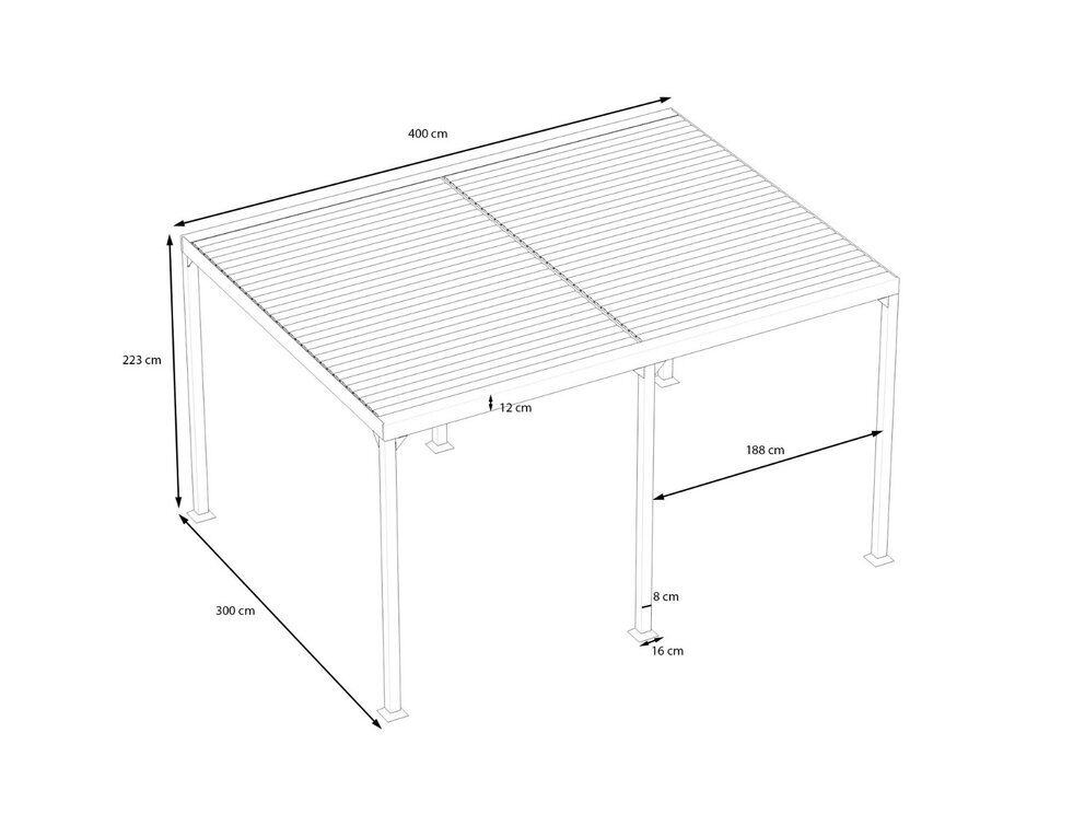 | ✔ | Flexibler Sonnenschutz Dank der verstellbaren Aluminium-Lamellen im Dachbereich können Sie die Beschattung individuell anpassen. Ob Sie maximalen Schatten wünschen oder etwas Sonnenlicht einlassen möchten – mit dem ARTELIA Urban Pavillon haben Sie stets die volle Kontrolle. |