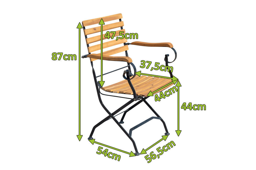 Klassisches Design kombiniert mit hochwertigen Materialien - dieser Klappstuhl ist nicht nur ein Hingucker, sondern darüber hinaus auch noch besonders robust. Dafür sorgt neben dem schwarzen Stahlrahmen die Verwendung von geöltem Akazienholz für Sitzfläche und Rückenlehne, das sehr robust ist. Trotz des Eisenrahmens überzeugt dieser Stuhl mit seinem geringen Eigenwicht von nur ca. 8,3 kg.