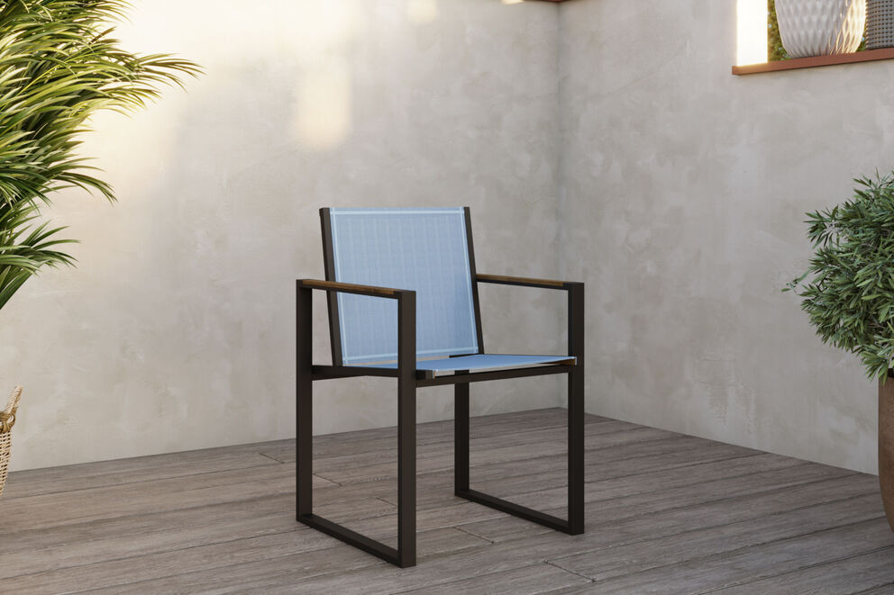 Schlichte Eleganz für Ihre Terrasse oder Ihren Garten: Der Sessel ist mit Maßen von ca. 56 x 61 x 85 cm mit bis zu ca. 100 kg belastbar und bietet Ihnen mit seiner Sitzbreite von ca. 48 cm und einer Sitztiefe von ca. 48 cm auch eine großzügige Sitzfläche, die jederzeit zum Verweilen einlädt. Das Gestell besteht aus pulverbeschichtetem Aluminium im schicken anthrazit, während die hautschmeichelnden Armlehnen – aus gebürstetem, natürlichen Teakholz – erhöhten Komfort schenken. Bespannt wird das solide Gestell mit Batyline Textilenen im passenden Hellgrau. Es ist unglaublich sorgt für ein herrlich luftiges Sitzgefühl, das Sie auch in der Sommerhitze nicht im Stich lässt. Dank des schlanken Designs und geringen Gewichtes von ca. 4,08 kg lässt sich der Sessel auch leicht transportieren und verstauen.