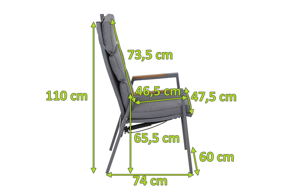 1x SIENA GARDEN Savona Sessel, matt graphit , Alu/Teak/Texfabric, 74x60x110 cm, verstellbare Rückenlehne, inkl. Polster (J04042)