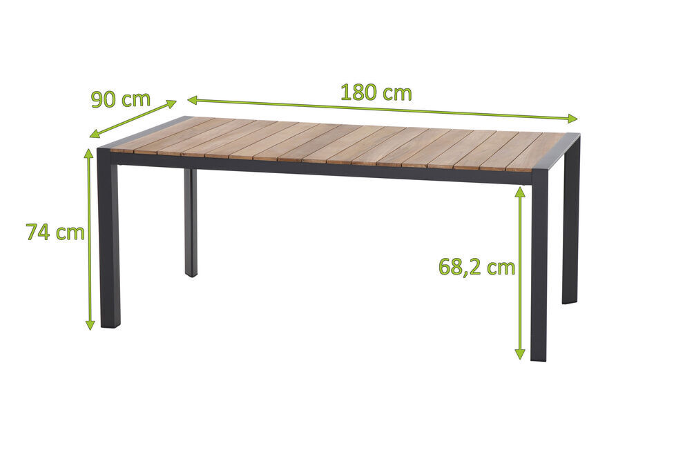 1x SIENA GARDEN Zurigo Esstisch, anthrazit matt, Aluminium pulverbeschichtet/Teakholz, 180x90 cm (M29416)
