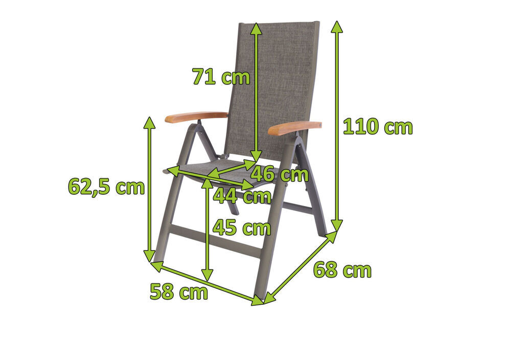Der Multipositionssessel mit den Maßen von ca. 68 x 58 x 110 cm verfügt über ein pulverbeschichtetes Aluminiumgestell in anthrazit. Das Gestell wird durch die Pulverbeschichtung stabiler und ist damit effektiv vor Witterungseinflüssen wie Regen oder starker Sonneneinstrahlung geschützt. Auf das robuste Gestell wurde ein formstabiles Textilene-Gewebe aus 70% Polyvinylchlorid (PVC) und 30% Polyester in grau gespannt. Mittels Rasterschiene lässt sich die Rückenlehne 9-fach verstellen. Ihr Komfort lässt sich dadurch fühlbar steigern - so können Sie selbst entscheiden, ob Sie lieber bequem aufrecht sitzen oder entspannt liegend die Sonne genießen möchten. Mit einem Gewicht von nur ca. 4,7 kg lässt sich der Multipositionssessel ganz leicht hin und her verschieben. Gleichzeitig bietet er die nötige Stabilität und einen bequemen Sitzkomfort. Der Stoff von Sitzfläche und Rückenlehne wurde PU-beschichtet und besitzt daher einen natürlichen Abperleffekt.