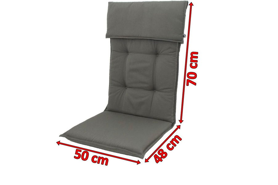 Der Bezug wird aus 100% Acrylfaser (Dralon®) mit Teflonbeschichtung gefertigt, was sie gemütlich und gleichzeitig unglaublich pflegeleicht macht. Das Polster ist abwischbar, aber dennoch luftdurchlässig, damit Sie nicht unnötig schwitzen, wenn Sie auf diesen sitzen oder liegen. Die Auflage bietet dank der Färbung in einem schönen Grauton auch einen tollen Farbtupfer für Ihre Möbel. Durch die verstellbare Halterung mit Klickverbindung an der Rückseite und die Bindekordeln an der Sitzfläche lässt sich die Auflage kinderleicht fixieren und verrutscht nicht so leicht, auch wenn der Stuhl eine glatte Oberfläche besitzt. Dank der Maße von ca. 120 x 50 cm passt sich die Auflage perfekt an die meisten Hochlehner an. Der Komfort kommt selbstverständlich nicht zu kurz - dafür sorgt neben dem weichen, ca. 7 cm starken Kern auch das zusätzliche Kopfpolster. Ob zum Sonnen, beim Grillabend oder bei der Familienfeier - diese Auflage macht stets eine gute Figur.