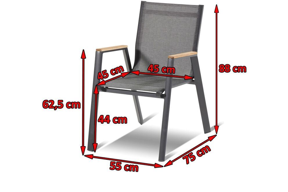 Die Gartensessel aus der Aruba-Serie von Hartman wissen durch ihre qualitativ hochwertige Verarbeitung und Stabilität zu überzeugen. Das Gestell aus robusten Aluminium in der Farbe Xerix (Anthrazit) sorgt für ein geringes Eigengewicht von nur ca. 3,5 kg. Trotz des geringen Gewichts können die Sessel mit bis zu ca. 130 kg belastet werden. Um Ihren Terassenboden zu schützen, verfügen die Sessel über praktische Bodenschoner. Dank der besonderen Stoffzusammensetzung der Textilenbespannung aus 70% Polyvinylchlorid und 30% Polyester in der Farbe Anthrazit profitieren Sie von einer langen Haltbarkeit. Die Teakholz Armlehnen unterstützen die hochwertige Optik der Sessel zusätzlich. Sie werden gar nicht mehr aufstehen wollen, denn das witterungsbeständige Material ist durch seine Flexibilität auch ohne Auflagen sehr bequem.