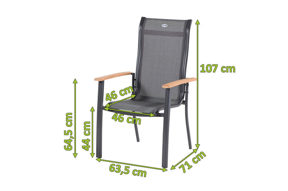 1x HARTMAN Alice Dining Stuhl, xerix/anthrazit, Alu/2x2 Textilene, mit Teak-Armlehnen (65292210)