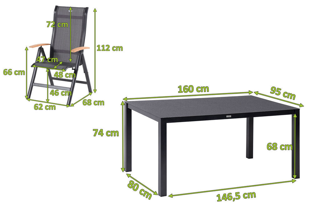 Bei dieser Esstischgruppe treffen hochwertige Materialien und Design auf modernste Weise aufeinander. Das Set besteht aus einem innovativen Esstisch der Marke OUTFLEXX mit den Maßen von ca. 160x95x74 cm und 6 Klappstühle, der Marke HARTMAN aus der Serie 'Alice '.