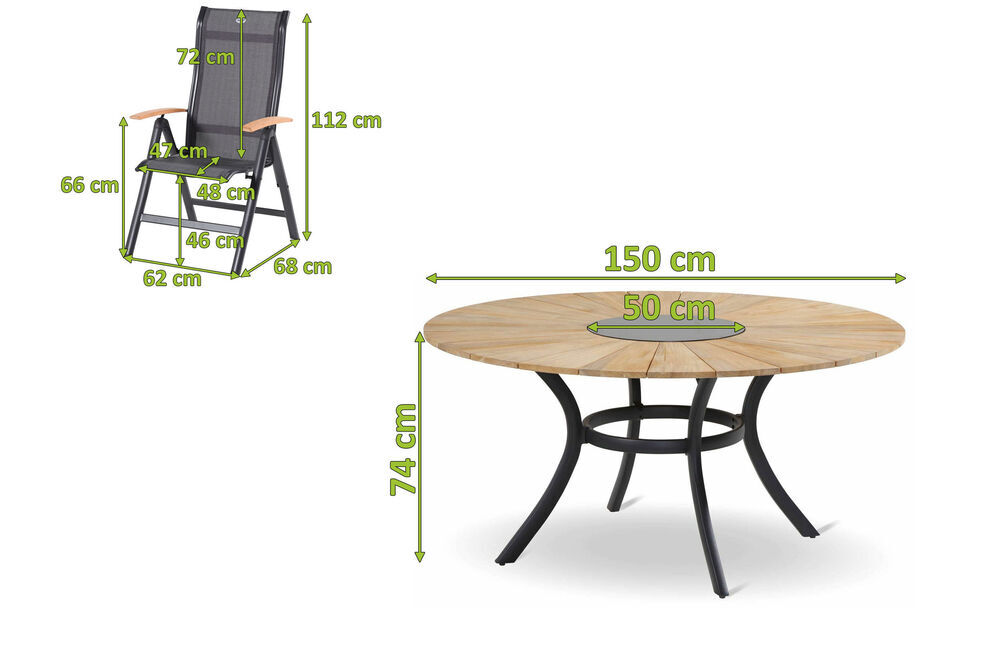 1x HARTMAN Provence Esstisch, xerix/natur, Alu/Teak, ca. Ø150cm (62299010,53385200,72601000,72150000)