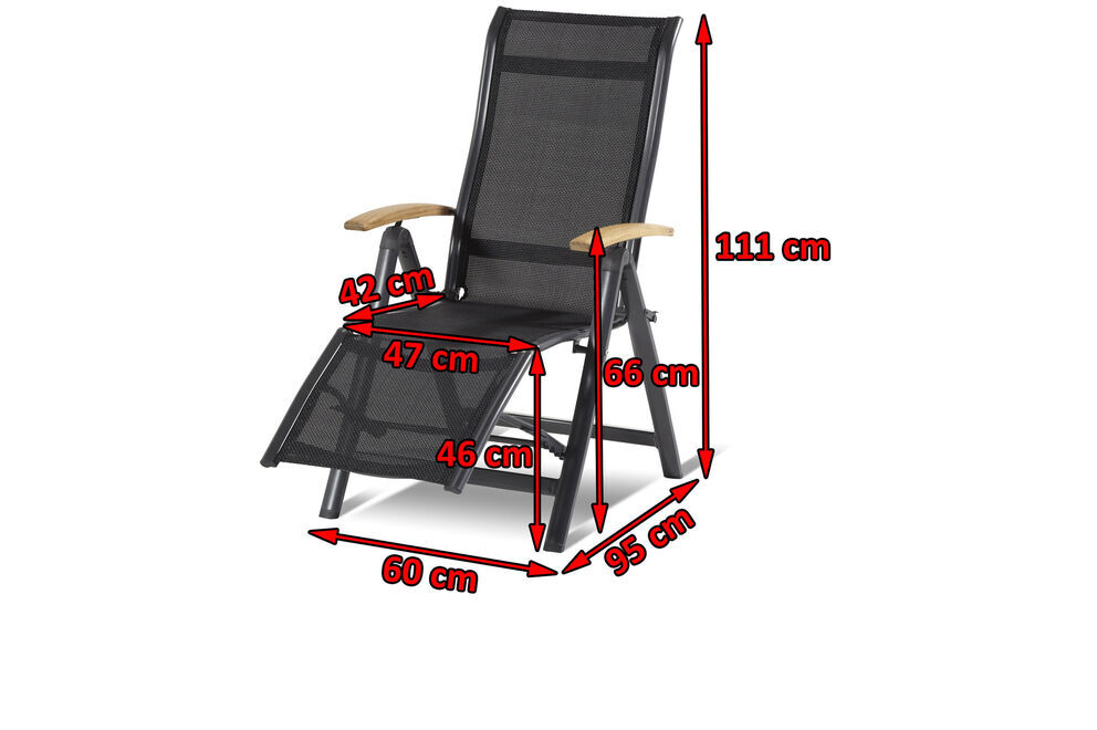Diese Relaxliege von Hartman weiß durch ihre qualitativ hochwertige Verarbeitung und Stabilität zu überzeugen. Wegen der Armlehnen aus robusten Teakholz entsteht eine unverwechselbare Optik, die den Stuhl zu einem echten Hingucker macht. Dank der besonderen Stoffzusammensetzung der schwarzen Textilenbespannung aus 70% Polyvinylchlorid und 30% Polyester profitieren Sie von einer langen Haltbarkeit. Sie werden gar nicht mehr aufstehen wollen, denn das witterungsbeständige Material ist durch seine Flexibilität auch ohne Auflagen sehr bequem. Das Gestell aus pulverbeschichtetem Aluminium sorgt für ein geringes Eigengewicht von nur ca. 7,2 kg, so können Sie jederzeit Ihren Standort wechseln und sich flexibel entscheiden, ob Sie lieber in der Sonne oder im Schatten sitzen möchten. Dank der 6-Fach verstellbaren Lehne finden Sie sicher Ihre Lieblingsposition und können sich so richtig entspannen.