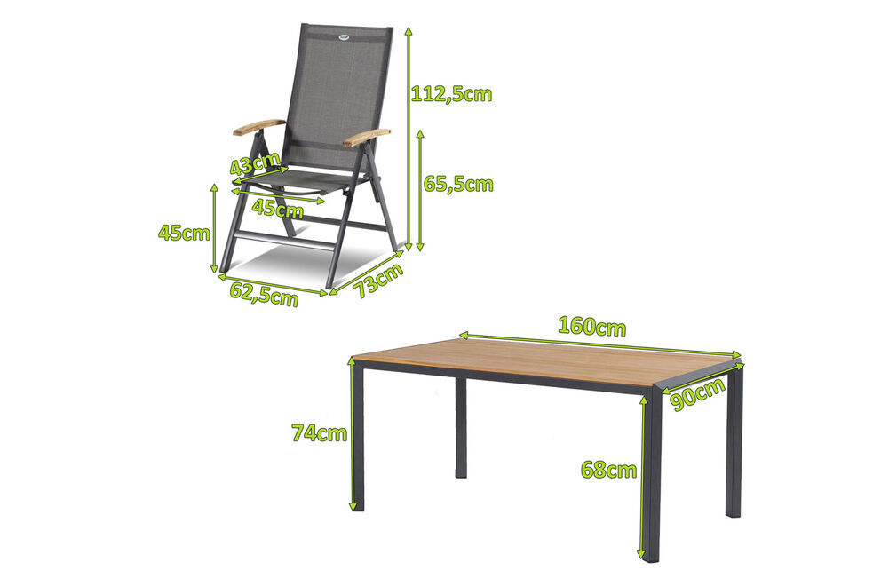 Die Klappstühle von Hartman wissen durch die qualitativ hochwertige Verarbeitung und Stabilität zu überzeugen. Die schlichte Optik mit dem pulverbeschichtetem Aluminiumrahmen in xerix, dem passenden Textilen-Gewebe in anthrazit und Armlehnen aus edlem Teak, macht dieses Modell zu einem echten Hingucker. Dank der vorteilhaften Stoffzusammensetzung Textilenbespannung aus 70% Polyvinylchlorid und 30% Polyester profitieren Sie von einer langen Haltbarkeit. Sie werden gar nicht mehr aufstehen wollen, denn das witterungsbeständige Material ist durch seine Flexibilität auch ohne Auflagen sehr bequem. Das Gestell aus robusten Aluminium sorgt für ein geringes Eigengewicht von nur ca. 4,6 kg, sodass sich die Stühle kinderleicht verschieben oder an die gewünschte Position tragen lassen. So können Sie jederzeit flexibel entscheiden, ob Sie lieber in der Sonne oder im Schatten sitzen wollen. Trotz des leichten Gewichts sind die Klappstühle äußerst stabil und können mit bis zu 130 kg belastet werden. Ob Sie beim Essen ganz aufrecht sitzen möchten oder sich in der Sonne zurücklehnen wollen, Sie finden dank der 6-fachen Verstellbarkeit immer die richtige Sitzposition. Ebenso schnell und unkompliziert können Sie die Sessel zusammenklappen und platzsparend verstauen.