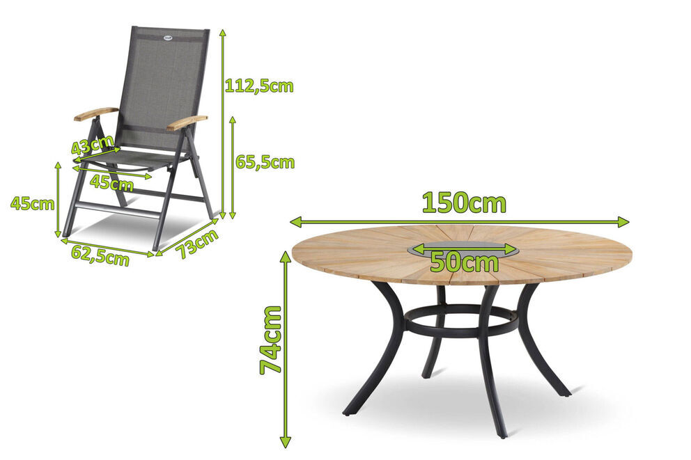 Dieser Klappstühle von Hartman weiß durch seine qualitativ hochwertige Verarbeitung und Stabilität zu überzeugen. Die schlichte Optik mit dem pulverbeschichtetem Aluminiumrahmen in xerix, dem passenden Textilen-Gewebe in anthrazit und Armlehnen aus edlem Teak, macht dieses Modell zu einem echten Hingucker. Dank der vorteilhaften Stoffzusammensetzung Textilenbespannung aus 70% Polyvinylchlorid und 30% Polyester profitieren Sie von einer langen Haltbarkeit. Das Gestell aus robusten Aluminium sorgt für ein geringes Eigengewicht von nur ca. 4,6 kg, sodass sich der Stuhl kinderleicht verschieben oder an die gewünschte Position tragen lässt. So können Sie jederzeit flexibel entscheiden, ob Sie lieber in der Sonne oder im Schatten sitzen wollen. Trotz des leichten Gewichts ist der Klappstühle äußerst stabil und kann mit bis zu 130 kg belastet werden. Ob Sie beim Essen ganz aufrecht sitzen möchten oder sich in der Sonne zurücklehnen wollen, Sie finden dank der 6-fachen Verstellbarkeit immer die richtige Sitzposition. Ebenso schnell und unkompliziert können Sie den Stuhl zusammenklappen und platzsparend verstauen.