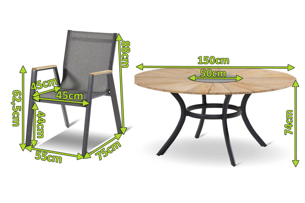 Der Tisch ist gefertigt aus pulverbeschichtetem Aluminium in der Farbe Xerix (Anthrazit) und wird optisch perfekt durch die runde Tischplatte aus SVLK-zertifiziertem Teakholz ergänzt. Die Maße von ca. Ø 150 x 74 cm sorgen dafür, dass stets ausreichend Ablagefläche zur Verfügung steht und Ihre Gäste bequem genügend Platz finden. Das Highlight dieses Tisches ist das Granitinlay, das bei Bedarf problemlos herausgenommen und durch den im Lieferumfang enthaltenen Eiskühler ausgetauscht werden kann. So haben Sie auch bei sommerlichen Temperaturen stets gekühlte Getränke direkt zur Hand.