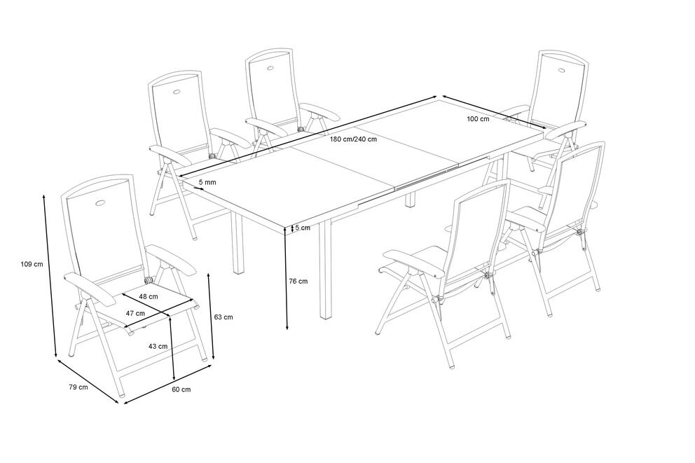 Bei dieser Esstischgruppe treffen hochwertige Materialien und Design auf modernste Weise aufeinander. Das Set besteht aus einem innovativen Premium Ausziehtisch der Marke OUTFLEXX mit den Maßen von ca. 180/240 x 100 x 76 cm und 6 Klappstühlen der Marke Hartman aus der Serie 'Raffaelo'.
