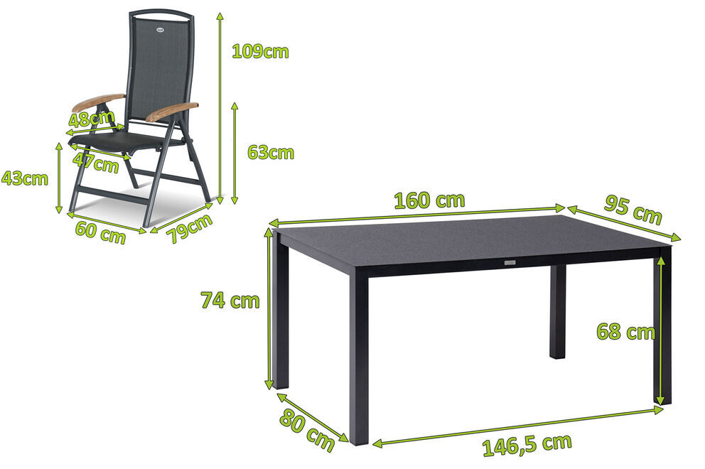 Bei dieser Esstischgruppe treffen hochwertige Materialien und Design auf modernste Weise aufeinander. Das Set besteht aus einem innovativen Esstisch der Marke OUTFLEXX mit den Maßen von ca. 160x95x74 cm und 6 Klappstühle, der Marke HARTMAN aus der Serie 'Raffaelo '.