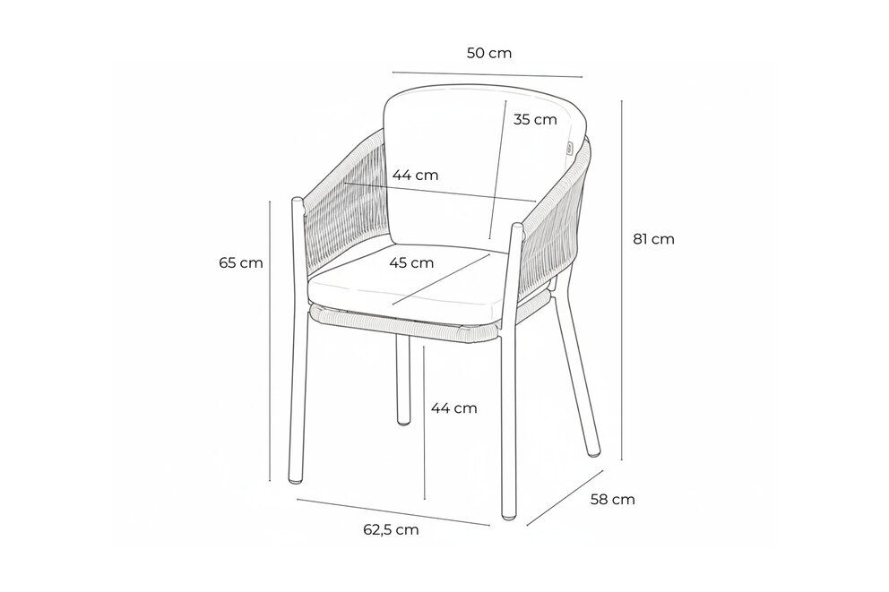 Mit ca. 58 x 62 x 81 cm ist der Sessel kompakt und flexibel integrierbar – perfekt für Essgruppen, Terrassenarrangements oder als einzelnes Designstück in modernen Outdoor-Bereichen. |