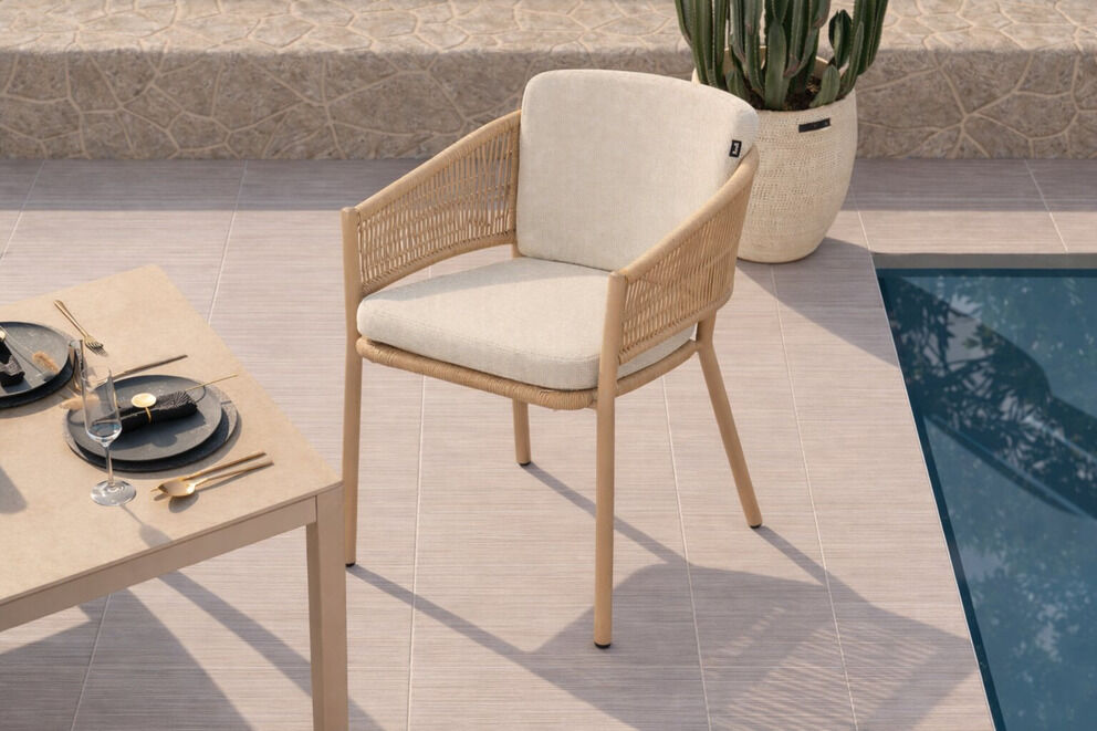 Ob als Teil einer hochwertigen Essgruppe, als stilvoller Einzelstuhl auf der Terrasse oder als Ergänzung zu bestehenden Gartenmöbeln – dieser Diningsessel in cappuccino/beige ist eine ideale Wahl für alle, die Wert auf Design, Komfort und Funktionalität legen. Er schafft eine einladende Atmosphäre und ergänzt unterschiedlichste Umgebungen, von mediterranen Gartenstilen bis hin zu modernen Outdoor-Lounges.