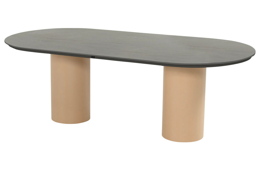 Die ca. 220 x 100 cm große Tischplatte besteht aus robuster Keramik und bietet nicht nur eine anspruchsvolle Optik, sondern auch hervorragende funktionale Eigenschaften. Keramik gilt als besonders kratzfest, pflegeleicht und hitzebeständig. Die anthrazitfarbene Struktur harmoniert perfekt mit dem cappuccinofarbenen Gestell und setzt moderne Akzente.
