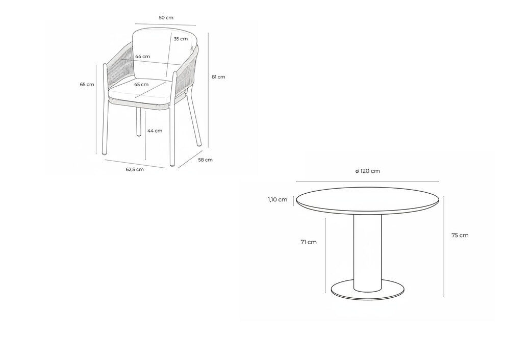 Runder Tisch Ø ca. 120 cm Die großzügige Tischfläche von ca. 120 x 120 cm bietet komfortabel Platz für vier Personen. Die runde Form fördert eine kommunikative Sitzordnung und macht die Garten-Essgruppe zum Mittelpunkt auf Terrasse oder Balkon. |