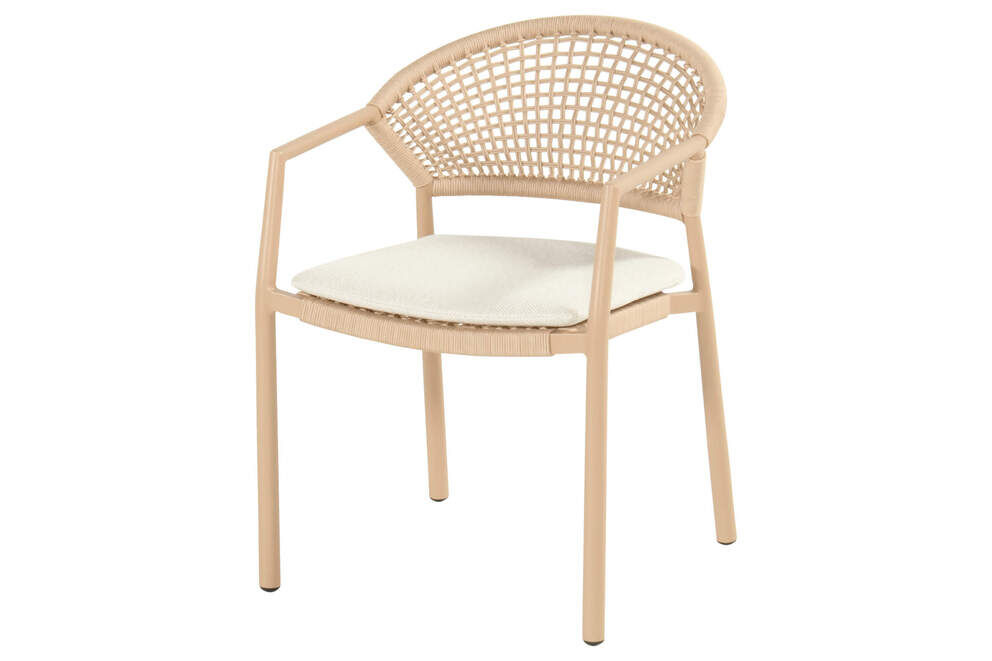 Das im Lieferumfang enthaltene Sitzkissen ergänzt den warmen Farbton des Sessels ideal und sorgt für eine weiche, angenehm gepolsterte Sitzfläche. Durch das geringe Eigengewicht lässt sich der Sessel leicht an unterschiedliche Bereiche im Außenraum bewegen. Ein weiterer Pluspunkt ist die Stapelbarkeit: Mehrere Sessel können übereinandergestapelt werden, was besonders bei wenig Stauraum, saisonaler Einlagerung oder gastronomischer Nutzung überzeugende Vorteile bietet.