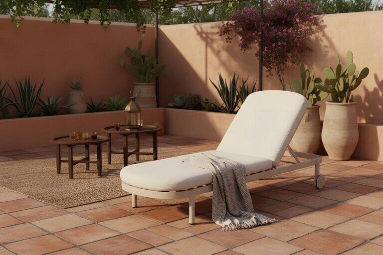 Die sand/beige Farbgebung schafft eine warme, ruhige Atmosphäre und fügt sich sowohl in moderne als auch in klassische Gartenkonzepte harmonisch ein. Die Polsterung bietet einen angenehmen Liegekomfort und lädt zu ausgedehnten Erholungsmomenten ein. Dank der durchgehenden Auflage entsteht eine einheitliche, weiche Liegefläche, die Ihnen selbst über längere Zeit hinweg eine komfortable Nutzung ermöglicht.