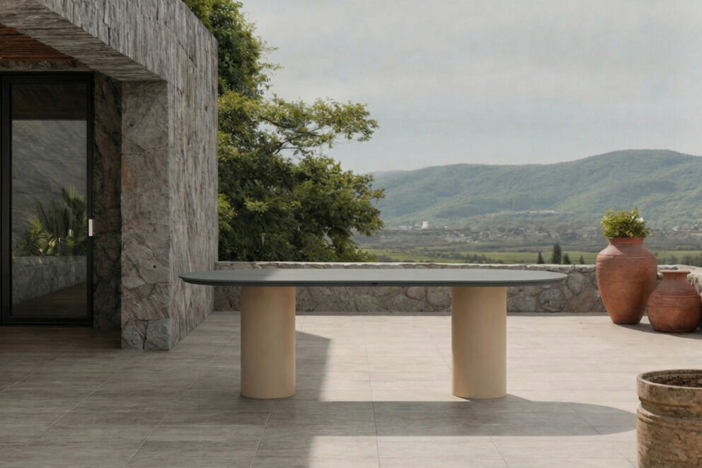Die ovale Form sorgt für eine angenehme Sitzatmosphäre ohne harte Kanten, wodurch Gespräche und gemeinsame Mahlzeiten noch entspannter verlaufen. Die großzügige Fläche bietet ausreichend Platz für sechs Personen und lässt gleichzeitig Raum für Dekorationen und Serviergeschirr.