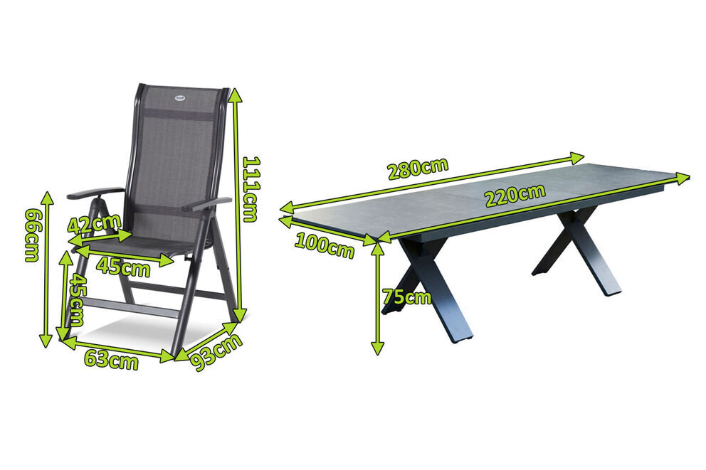 Der Tisch mit dem gekreuzten Gestell ist gefertigt aus pulverbeschichtetem Aluminium in der Farbe Xerix (Anthrazit) und wird optisch perfekt durch die Glaskeramik-Tischplatte, ebenfalls in der Farbe Xerix ergänzt. Die Maße von ca. 220 x 100 x 75 cm sorgen dafür, dass stets ausreichend Ablagefläche zur Verfügung steht. Bei Bedarf kann der Tisch auf eine Länge von ca. 280 cm ausgezogen werden, so finden bequem auch große Runden genügend Platz in Ihrem Garten. Dank der Ausziehfunktion hebt sich dieses Modell von den üblichen Tischen der Xanadu Serie ab - den Ausziehtisch erhalten Sie exklusiv bei uns.