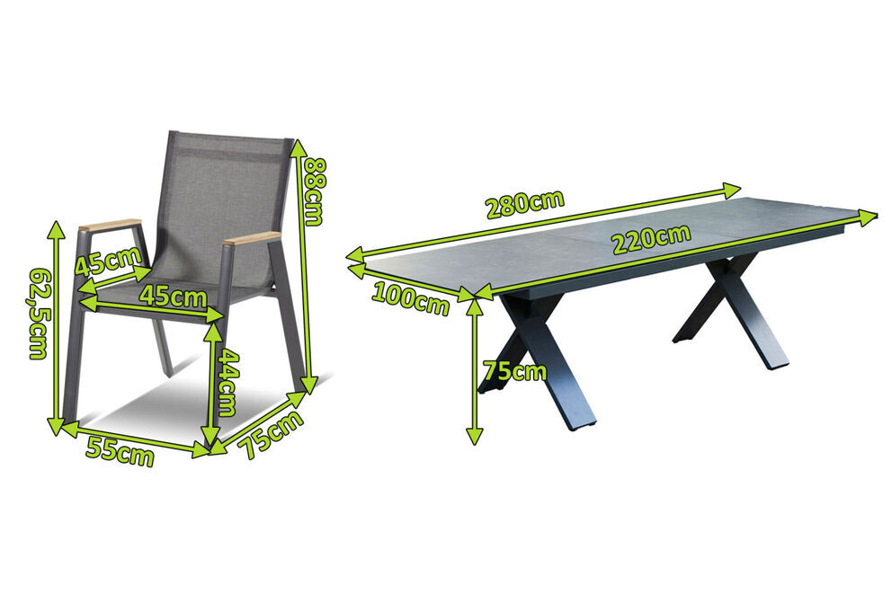 Der Tisch mit dem gekreuzten Gestell ist gefertigt aus pulverbeschichtetem Aluminium in der Farbe Xerix (Anthrazit) und wird optisch perfekt durch die Glaskeramik-Tischplatte, ebenfalls in der Farbe Xerix ergänzt. Die Maße von ca. 220 x 100 x 75 cm sorgen dafür, dass stets ausreichend Ablagefläche zur Verfügung steht. Bei Bedarf kann der Tisch auf eine Länge von ca. 280 cm ausgezogen werden, so finden bequem auch große Runden genügend Platz in Ihrem Garten. Dank der Ausziehfunktion hebt sich dieses Modell von den üblichen Tischen der Xanadu Serie ab - den Ausziehtisch erhalten Sie exklusiv bei uns.