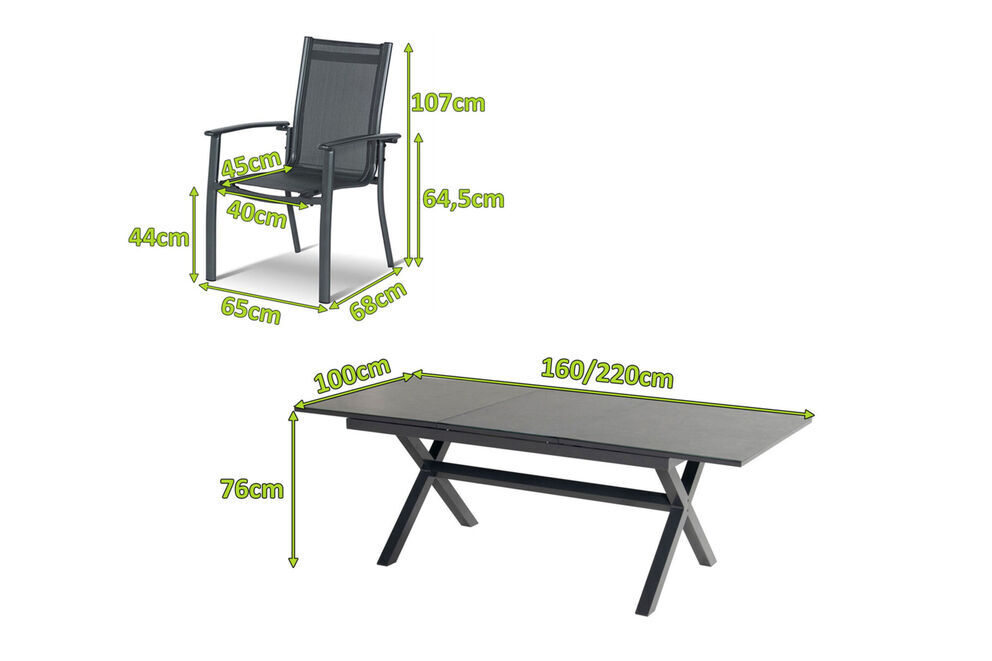 Das gekreuzte Gestell ist gefertigt aus pulverbeschichtetem Aluminium in der Farbe Xerix (Anthrazit) und wird optisch perfekt durch die Glaskeramik-Tischplatte, ebenfalls in der Farbe Xerix ergänzt. Die Maße von ca. 160 x 100 x 75 cm sorgen dafür, dass stets ausreichend Ablagefläche zur Verfügung steht. Bei Bedarf kann der Tisch auf eine Länge von ca. 220 cm ausgezogen werden, so finden bequem auch große Runden genügend Platz in Ihrem Garten. Dank der Ausziehfunktion hebt sich dieses Modell von den üblichen Tischen der Xanadu Serie ab - den Ausziehtisch erhalten Sie exklusiv bei uns.