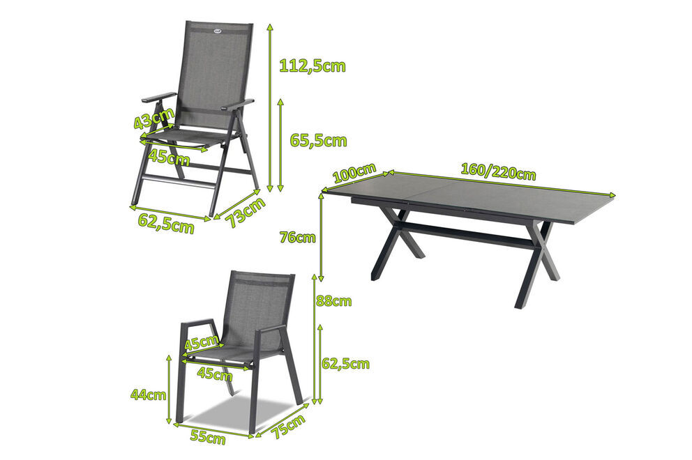 Das gekreuzte Gestell ist gefertigt aus pulverbeschichtetem Aluminium in der Farbe Xerix (Anthrazit) und wird optisch perfekt durch die Glaskeramik-Tischplatte, ebenfalls in der Farbe Xerix ergänzt. Die Maße von ca. 160 x 100 x 75 cm sorgen dafür, dass stets ausreichend Ablagefläche zur Verfügung steht. Bei Bedarf kann der Tisch auf eine Länge von ca. 220 cm ausgezogen werden, so finden bequem auch große Runden genügend Platz in Ihrem Garten. Dank der Ausziehfunktion hebt sich dieses Modell von den üblichen Tischen der Xanadu Serie ab - den Ausziehtisch erhalten Sie exklusiv bei uns.