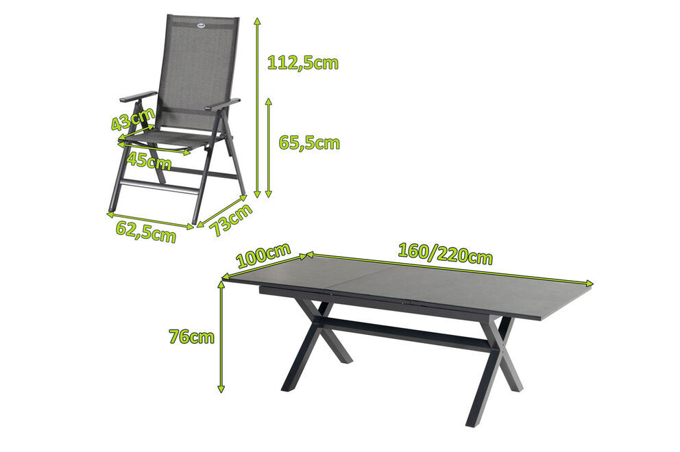 Die Klappstühle von Hartman wissen durch die qualitativ hochwertige Verarbeitung und Stabilität zu überzeugen. Dank der vorteilhaften Stoffzusammensetzung der Textilenbespannung in anthrazit aus 70% Polyvinylchlorid und 30% Polyester profitieren Sie von einer langen Haltbarkeit. Sie werden gar nicht mehr aufstehen wollen, denn das witterungsbeständige Material ist durch seine Flexibilität auch ohne Auflagen sehr bequem. Das Gestell aus pulverbeschichtetem Aluminium in xerix sorgt für ein geringes Eigengewicht von nur ca. 4,6 kg, sodass Sie die Stühle jederzeit verschieben und zwischen Sonne und Schatten wählen können. Trotz des leichten Gewichts sind die Klappstühle äußerst stabil und können mit bis zu ca. 130 kg belastet werden. Um Ihren Terrassenboden beim Verschieben zu schützen, verfügen die Sessel über praktische Bodenschoner. Ob Sie beim Essen ganz aufrecht sitzen möchten oder sich in der Sonne zurücklehnen wollen, Sie finden dank der 7-fach verstellbaren Lehne immer die richtige Sitzposition. Ebenso schnell und unkompliziert können Sie den Stuhl zusammenklappen und platzsparend verstauen.