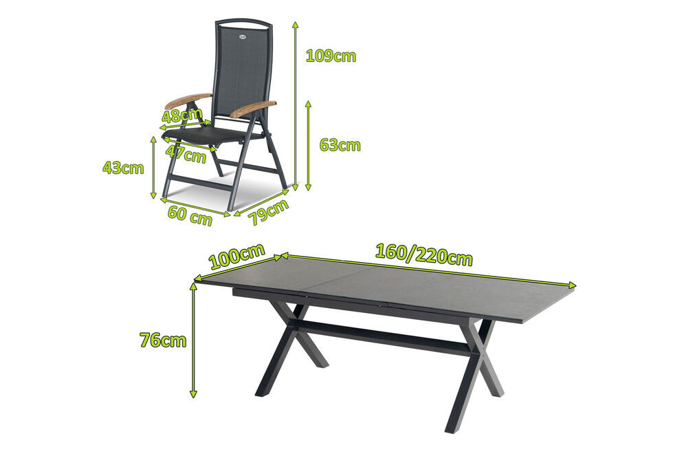 6x Klappstühle Da Vinci in xerix/anthrazit, Armlehnen aus Teak