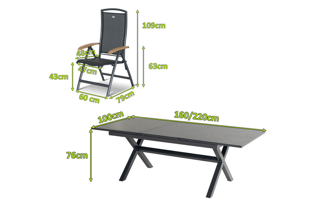 8x Klappstühle Da Vinci in xerix/anthrazit, Armlehnen aus Teak