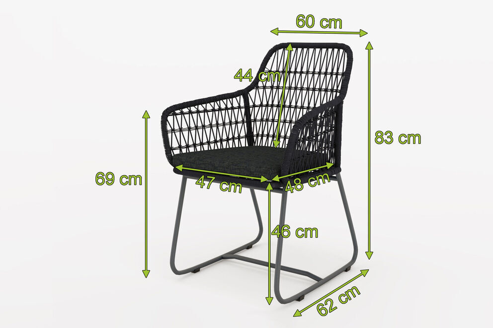 Schlichte Eleganz für Ihre Terrasse oder Ihren Garten: Der Sessel ist mit Maßen von ca. 60 x 62 x 83 cm mit bis zu ca. 100 kg belastbar und bietet Ihnen mit seiner Sitzbreite von ca. 47 cm und einer Sitztiefe von ca. 48 cm auch eine großzügige Sitzfläche, die jederzeit zum Verweilen einlädt. Das Gestell besteht aus pulverbeschichtetem Aluminium. Bespannt ist das solide Gestell mit einem Rope Geflecht mit Kordeloptik. Schlicht und auffallend zugleich. Sie dachten, das ginge nicht? Dieser Sessel beweist das Gegenteil. Strapazierfähig, pflegeleicht und witterungsbeständig ist Rope ebenfalls, so dass dieser Sessel problemlos das ganze Jahr über im Freien stehen kann. Dank des schlanken Designs und geringen Gewichtes von ca. 4,78 kg lässt sich der Sessel auch leicht transportieren und verstauen.