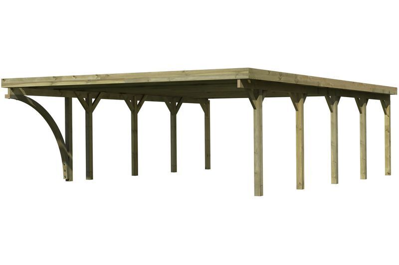 Das Doppelcarport Classic von KARIBU bietet Ihren Autos den Schutz den sie verdienen. Durch die massiven kesseldruckimprägnierten Pfosten mit einem Maß von je ca. 12 x 12 cm sorgt es mit dem ca. 28,3 m² (Classic 2 ca. 40,24 m², Classic 3 ca. 50,9 m²) großen Dach aus Kunststoff (ca. 0,8 mm) für ausreichend Stellfläche. Ihr Auto wird so effektiv vor der Sommersonne oder den Winterstürmen geschützt und hält gleichzeitig leichter einen hohen Restwert. Witterungseinflüsse wir Regen, Hagel oder herumfliegende Blätter bleiben ausgesperrt. Wind hingehen kann ungehindert durch das Carport zirkulieren und trocknet auch schnell wieder nass geparkte Autos. Die Verwendung von hochwertigen, passenden H-Ankern mit einer Länge von ca. 80 cm wird auf Grund der großen Dachflächen und der Windlasten dringend empfohlen. Optional kann das Carport mit Seiten- oder Rückwänden oder Geräteräumen ergänzt werden.
