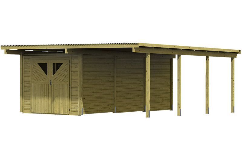 Das Doppelcarport Eco von KARIBU bietet Ihren Autos den Schutz den sie verdienen. Durch die massiven kesseldruckimprägnierten Pfosten mit einem Maß von je ca. 9 x 9 cm sorgt es mit dem ca. 27,2 m² (Eco 2 ca. 28,25 m²) großen Dach aus Kunststoff (ca. 0,8 mm) für ausreichend Stellfläche. Ihr Auto wird so effektiv vor der Sommersonne oder den Winterstürmen geschützt und hält gleichzeitig leichter einen hohen Restwert. Witterungseinflüsse wir Regen, Hagel oder herumfliegende Blätter bleiben ausgesperrt. Wind hingehen kann ungehindert durch das Carport zirkulieren und trocknet auch schnell wieder nass geparkte Autos. Die Verwendung von hochwertigen, passenden H-Ankern mit einer Länge von ca. 80 cm wird auf Grund der großen Dachflächen und der Windlasten dringend empfohlen. Optional kann das Carport mit Seiten- oder Rückwänden oder Geräteräumen ergänzt werden.