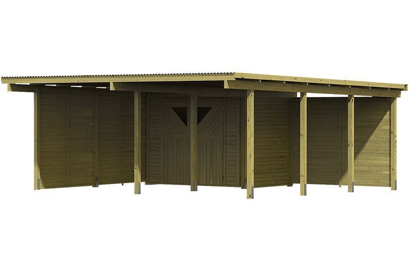 Das Doppelcarport Eco von KARIBU bietet Ihren Autos den Schutz den sie verdienen. Durch die massiven kesseldruckimprägnierten Pfosten mit einem Maß von je ca. 9 x 9 cm sorgt es mit dem ca. 27,2 m² (Eco 2 ca. 28,25 m²) großen Dach aus Kunststoff (ca. 0,8 mm) für ausreichend Stellfläche. Ihr Auto wird so effektiv vor der Sommersonne oder den Winterstürmen geschützt und hält gleichzeitig leichter einen hohen Restwert. Witterungseinflüsse wir Regen, Hagel oder herumfliegende Blätter bleiben ausgesperrt. Wind hingehen kann ungehindert durch das Carport zirkulieren und trocknet auch schnell wieder nass geparkte Autos. Die Verwendung von hochwertigen, passenden H-Ankern mit einer Länge von ca. 80 cm wird auf Grund der großen Dachflächen und der Windlasten dringend empfohlen. Optional kann das Carport mit Seiten- oder Rückwänden oder Geräteräumen ergänzt werden.