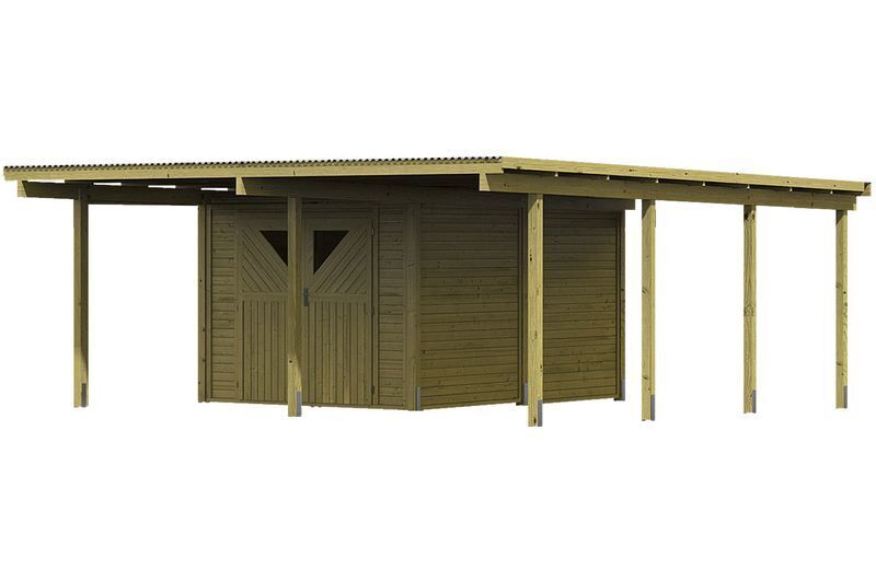 Das Doppelcarport Eco von KARIBU bietet Ihren Autos den Schutz den sie verdienen. Durch die massiven kesseldruckimprägnierten Pfosten mit einem Maß von je ca. 9 x 9 cm sorgt es mit dem ca. 27,2 m² (Eco 2 ca. 28,25 m²) großen Dach aus Kunststoff (ca. 0,8 mm) für ausreichend Stellfläche. Ihr Auto wird so effektiv vor der Sommersonne oder den Winterstürmen geschützt und hält gleichzeitig leichter einen hohen Restwert. Witterungseinflüsse wir Regen, Hagel oder herumfliegende Blätter bleiben ausgesperrt. Wind hingehen kann ungehindert durch das Carport zirkulieren und trocknet auch schnell wieder nass geparkte Autos. Die Verwendung von hochwertigen, passenden H-Ankern mit einer Länge von ca. 80 cm wird auf Grund der großen Dachflächen und der Windlasten dringend empfohlen. Optional kann das Carport mit Seiten- oder Rückwänden oder Geräteräumen ergänzt werden.