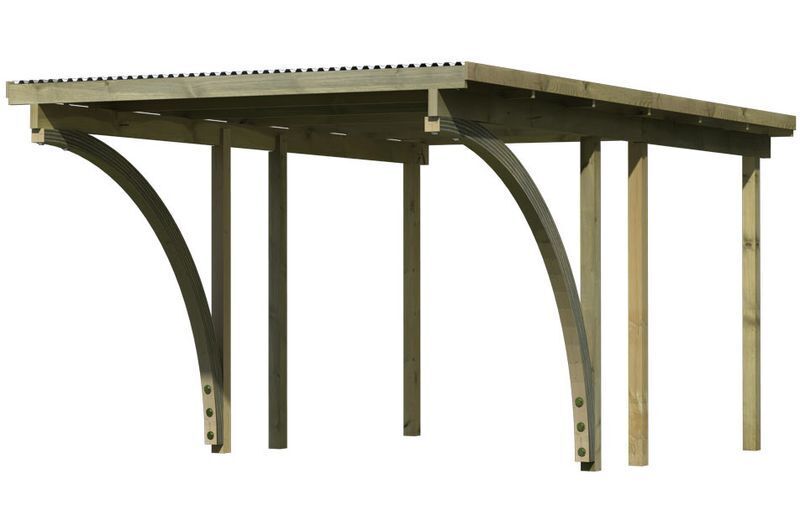 Das Einzelcarport Eco von KARIBU bietet Ihrem Auto den Schutz den es verdient. Durch die massiven kesseldruckimprägnierten Pfosten mit einem Maß von je ca. 9 x 9 cm sorgt es mit dem ca. 14,6 m² (Eco 2 ca. 20,55 m²) großen Dach aus Kunststoff (ca. 0,8 mm) für ausreichend Stellfläche. Ihr Auto wird so effektiv vor der Sommersonne oder den Winterstürmen geschützt und hält gleichzeitig leichter einen hohen Restwert. Witterungseinflüsse wir Regen, Hagel oder herumfliegende Blätter bleiben ausgesperrt. Wind hingehen kann ungehindert durch das Carport zirkulieren und trocknet auch schnell wieder nass geparkte Autos. Die Verwendung von hochwertigen, passenden H-Ankern mit einer Länge von ca. 80 cm wird auf Grund der großen Dachflächen und der Windlasten dringend empfohlen. Optional kann das Carport mit Seiten- oder Rückwänden oder Geräteräumen ergänzt werden.