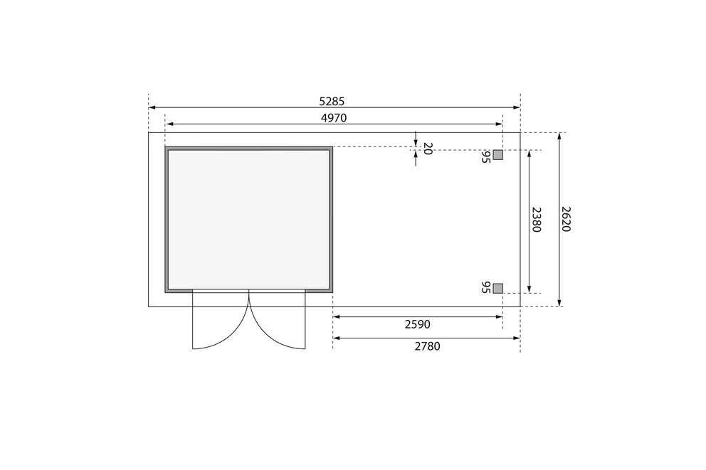 Das Gartenhaus Askola aus nordischer Fichte von KARIBU wird aus 19 mm Wandbrettern im Steck-/Schraubsystem gefertigt und kann somit rasch und einfach aufgebaut werden. Das praktische Flachdach aus Dachplatte sorgt dafür, dass das Gartenhaus schnell und wirkungsvoll gegen Witterungseinflüsse geschützt ist. Dank der Seitenhöhe von ca. 195 cm und einer Firsthöhe von ca. 211 cm sorgt das Haus innen für viel Platz. Kesseldruckimprägnierte Bodenbalken sorgen für optimalen Schutz gegen aufsteigende Feuchtigkeit. Durch die Positionierung unter dem Gartenhaus schützen die Bodenbalken effektiv vor Staunässe und Spritzwasser. Das Gartenhaus wird mit der, praktischerweise schon vormontierten Tür, im stabilen Massivholzrahmen ausgeliefert und bietet dank der großen Öffnung bequemen Zutritt in das Haus. Nebenbei bietet sie effektiven Schutz vor Diebstahl. Gleichzeitig lassen die großzügigen Lichtausschnitte im jeweiligen Türflügel ausreichend Tageslicht in das Gartenhaus einströmen.