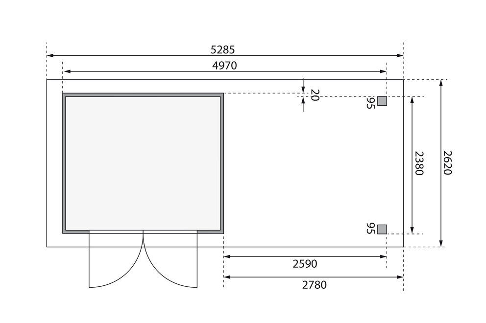 Das Gartenhaus Askola aus nordischer Fichte von KARIBU wird aus 19 mm Wandbrettern im Steck-/Schraubsystem gefertigt und kann somit rasch und einfach aufgebaut werden. Das praktische Flachdach aus Massivholz sorgt dafür, dass das Gartenhaus schnell und wirkungsvoll gegen Witterungseinflüsse geschützt ist. Dank der Seitenhöhe von ca. 195 cm und einer Firsthöhe von ca. 211 cm sorgt das Haus innen für viel Platz. Kesseldruckimprägnierte Bodenbalken sorgen für optimalen Schutz gegen aufsteigende Feuchtigkeit. Durch die Positionierung unter dem Gartenhaus schützen die Bodenbalken effektiv vor Staunässe und Spritzwasser. Das Gartenhaus wird mit der, praktischerweise schon vormontierten Tür, im stabilen Massivholzrahmen ausgeliefert und bietet dank der großen Öffnung bequemen Zutritt in das Haus. Nebenbei bietet sie effektiven Schutz vor Diebstahl. Gleichzeitig lassen die großzügigen Lichtausschnitte im jeweiligen Türflügel ausreichend Tageslicht in das Gartenhaus einströmen.