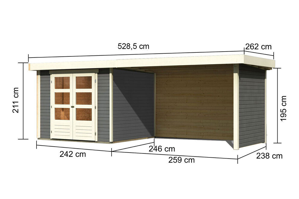 Vielseitig erweiterbar Das zahlreiche Zubehör von KARIBU sowie die Anbauten lassen der Kreativität freien Lauf. Sowohl beim stilvollen Einrichten des Innenbereichs als auch beim Dekorieren der Fassaden. |