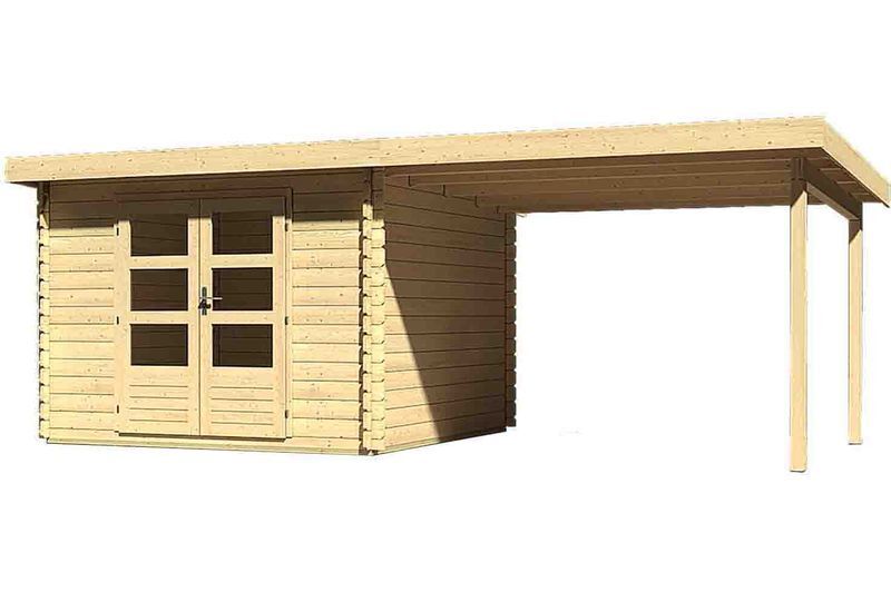 Im Set mit Anbaudach, welches entweder über ca. 200 cm, ca. 300 cm oder ca. 400 cm Länge verfügt, und wahlweise Seiten- bzw. Rückwände, stehen Ihnen attraktive Optionen zur Verfügung, das Haus nach Belieben zu erweitern.