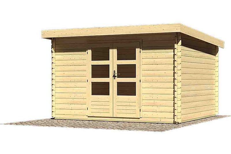 Das Blockbohlenhaus Bastrup 7 aus nordischer Fichte von KARIBU wird aus 28 mm Wandbohlen in klassischer Blockbohlenbauweise gefertigt und kann somit rasch und einfach aufgebaut werden. Bei der Blockbohlenbauweise werden die Wandbohlen reihum montiert. Begonnen wird mit einer halben, sprich unten glatten Bohle. Die patentierte 6-Plus-Eckverbindung sorgt dabei für höchste Wind- und Regendichtigkeit. Die Schraublöcher in den Blockbohlen sind werkseitig vorgefertigt und vereinfachen den Aufbau enorm. Das praktische Flachdach aus Massivholzdach sorgt dafür, dass das Gartenhaus schnell und wirkungsvoll gegen Witterungseinflüsse geschützt ist. Der vordere Dachüberstand ist mit ca. 28 cm ausreichend groß dimensioniert, um den Eingangsbereich wirkungsvoll zu schützen. Das Haus hat eine Grundfläche von ca. 9,5 m² und ca. 20 m³ umbauten Raum. Dank der Seitenhöhe von ca. 201 cm und einer Firsthöhe von ca. 222 cm sorgt das Haus innen für viel Platz. Kesseldruckimprägnierte Bodenbalken sorgen für optimalen Schutz gegen aufsteigende Feuchtigkeit. Durch die Positionierung unter dem Gartenhaus schützen die Bodenbalken effektiv vor Staunässe und Spritzwasser. Das Gartenhaus wird mit der, praktischerweise schon vormontierten Tür, im stabilen Massivholzrahmen ausgeliefert und bietet dank der großen Öffnung bequemen Zutritt in das Haus. Nebenbei bietet sie effektiven Schutz vor Diebstahl. Gleichzeitig lassen die großzügigen Lichtausschnitte im jeweiligen Türflügel ausreichend Tageslicht in das Gartenhaus einströmen.