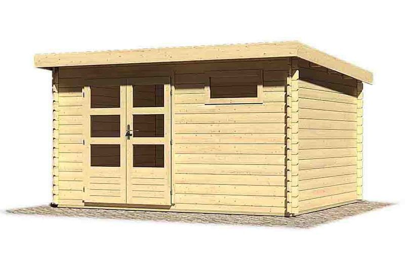 Das Blockbohlenhaus Bastrup 8 aus nordischer Fichte von KARIBU wird aus 28 mm Wandbohlen in klassischer Blockbohlenbauweise gefertigt und kann somit rasch und einfach aufgebaut werden. Bei der Blockbohlenbauweise werden die Wandbohlen reihum montiert. Begonnen wird mit einer halben, sprich unten glatten Bohle. Die patentierte 6-Plus-Eckverbindung sorgt dabei für höchste Wind- und Regendichtigkeit. Die Schraublöcher in den Blockbohlen sind werkseitig vorgefertigt und vereinfachen den Aufbau enorm. Das praktische Flachdach aus Massivholzdach sorgt dafür, dass das Gartenhaus schnell und wirkungsvoll gegen Witterungseinflüsse geschützt ist. Der vordere Dachüberstand ist mit ca. 28 cm ausreichend groß dimensioniert, um den Eingangsbereich wirkungsvoll zu schützen. Das Haus hat eine Grundfläche von ca. 10,4 m² und ca. 21,6 m³ umbauten Raum. Dank der Seitenhöhe von ca. 201 cm und einer Firsthöhe von ca. 222 cm sorgt das Haus innen für viel Platz. Kesseldruckimprägnierte Bodenbalken sorgen für optimalen Schutz gegen aufsteigende Feuchtigkeit. Durch die Positionierung unter dem Gartenhaus schützen die Bodenbalken effektiv vor Staunässe und Spritzwasser. Das Gartenhaus wird mit der, praktischerweise schon vormontierten Tür, im stabilen Massivholzrahmen ausgeliefert und bietet dank der großen Öffnung bequemen Zutritt in das Haus. Nebenbei bietet sie effektiven Schutz vor Diebstahl. Gleichzeitig lassen die großzügigen Lichtausschnitte im jeweiligen Türflügel ausreichend Tageslicht in das Gartenhaus einströmen.