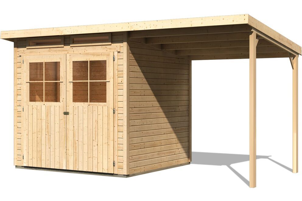 1x Gartenhaus Glücksburg 3 inkl. Montageanteilung und -material, wahlweise mit AnbautenBitte berücksichtigen Sie, dass die Anlieferung dieses Artikels per Spezialspedition erfolgt und die Ware mit einem großen 40t - LKW angeliefert wird. Die angegebene Lieferadresse muss entsprechend für dieses Fahrzeug anfahrbar sein.