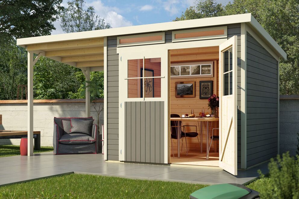 1x Gartenhaus Glücksburg 4 inkl. Montageanteilung und -material, wahlweise mit AnbautenBitte berücksichtigen Sie, dass die Anlieferung dieses Artikels per Spezialspedition erfolgt und die Ware mit einem großen 40t - LKW angeliefert wird. Die angegebene Lieferadresse muss entsprechend für dieses Fahrzeug anfahrbar sein.