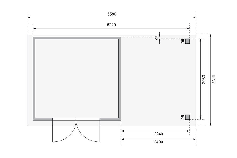 Bitte beachten: das Gartenhaus wird ohne Fußboden und, sofern nicht anders ausgewählt oder angegeben, auch ohne Zubehör angeliefert. Dieses können Sie separat oder schon als Set beim Artikel selber erwerben.