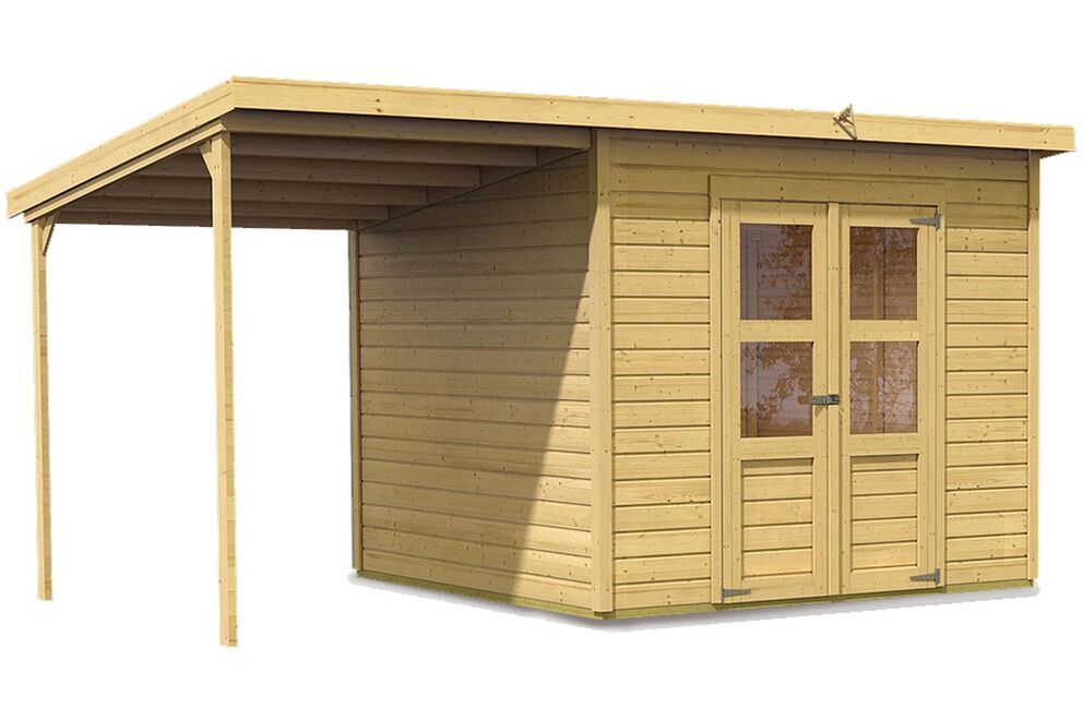 1x Gartenhaus Merseburg inkl. Montageanteilung und -material, wahlweise mit AnbautenBitte berücksichtigen Sie, dass die Anlieferung dieses Artikels per Spezialspedition erfolgt und die Ware mit einem großen 40t - LKW angeliefert wird. Die angegebene Lieferadresse muss entsprechend für dieses Fahrzeug anfahrbar sein.
